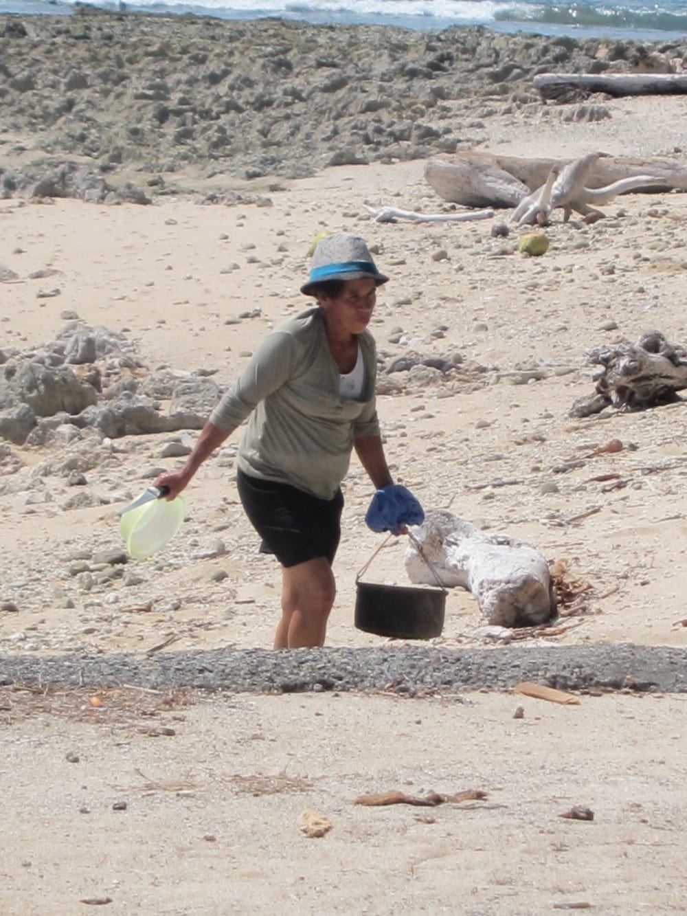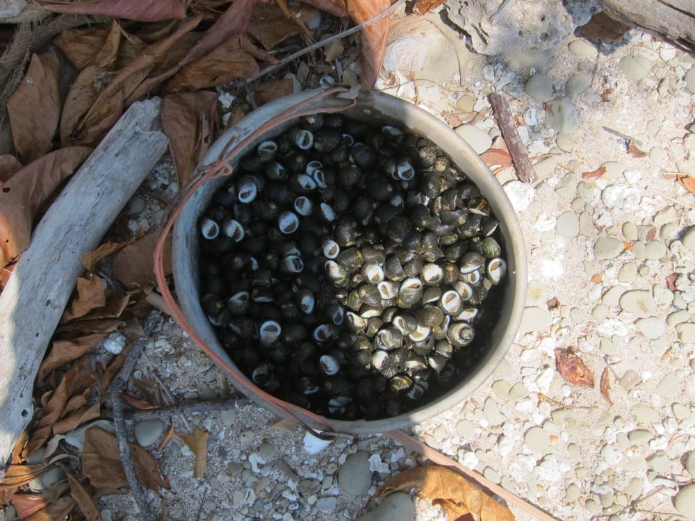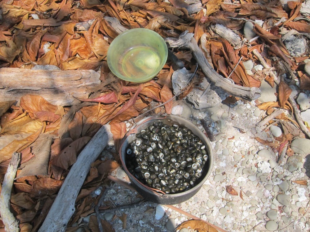 This past Sunday afternoon was no exception. My husband and I were wondering around a secluded, rocky beach with our heads down, trying not to blunder and fall on the jagged rocks. As we rounded a bend and peered around the corner, I was stuck by the sound of children laughing and giggling. It was two little boys, probably ages 5 and 7, playing naked on the beach at the point where a stream met the ocean. Although this moment of pure innocence struck me, it wasn’t actually what I will always remember about this day. What came next around the very same bend from which my husband and I had just come was a blue ribbon and pink shoes. As I squinted into the sun to make out the shape before me, I realized that it was an older woman perhaps about 55 years old, with a shovel in one hand and a pail in the other, and she was hunched over the rocks digging. As it turns out, this woman was the children’s aunt. As I approached her, I quickly realized what she was doing. She was digging in the rocks and filling her pail with large sea snails. Sea snails? I was fascinated so naturally, I went over to talk with her. The sea snails were to be their lunch. As if that wasn’t amazing enough, right as we were talking, right in front of me, she started collecting sticks and making a small fire. She was going to cook the pot of snails right there on the beach and ta-da, the family had their lunch. Absolutely wonderful!